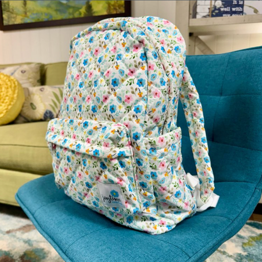 Handmade, Quilted Backpack (pink and blue) - with Hidden Bible Verse