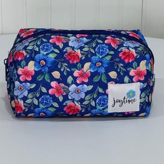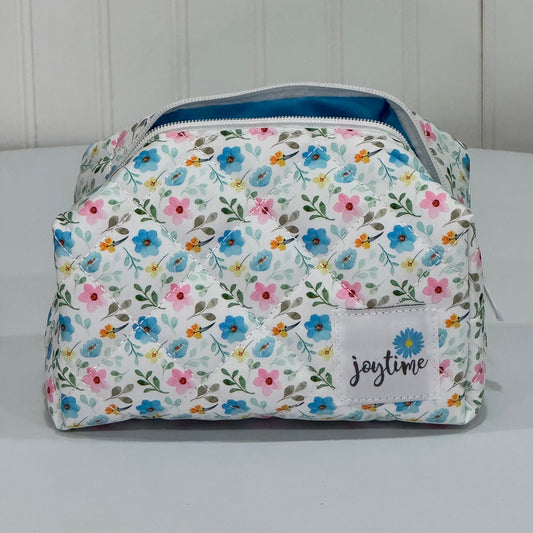Handmade, Quilted, Large Cosmetic Bag - pink and blue flowers
