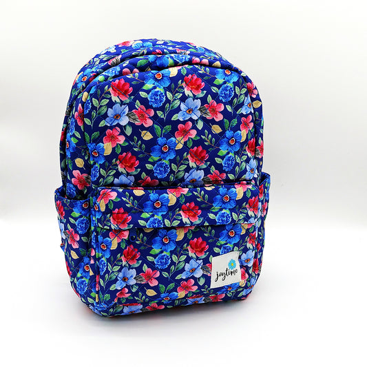 Handmade, Quilted Backpack - Red and blue Floral Pattern